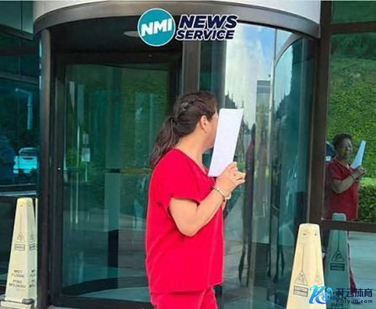 当她看到现场有媒体拿着相机瞄准她拍照时,她慌忙用A4纸挡住我方的脸,不思被媒体拍到正脸,但很可惜,她傍边即是一面玻璃,将她的脸照了出来,从镜子里能明晰的看到她的正脸。